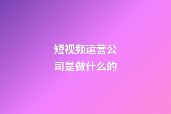 短视频运营公司是做什么的(短视频运营公司靠什么赚钱)